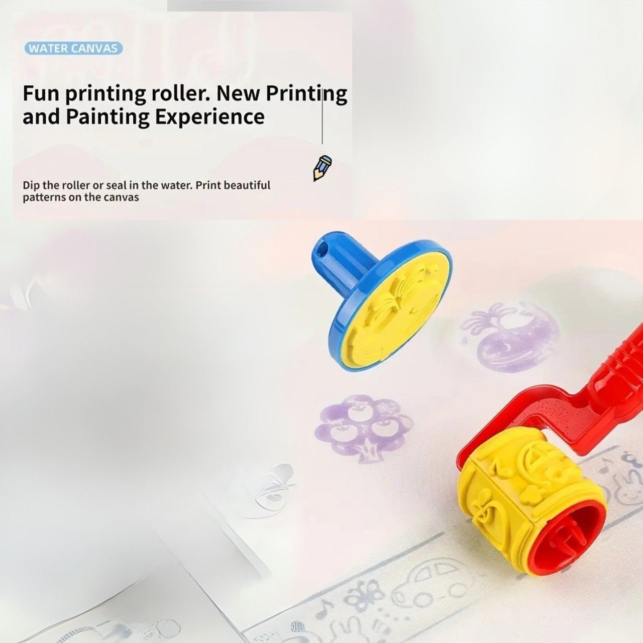 | A csomag tartalma: | 1x vízzel rajzoló szőnyeg (100 × 80 cm), 3x vízfilc, 6x sablon + henger, 1x festőalbum, 1x víztartály |