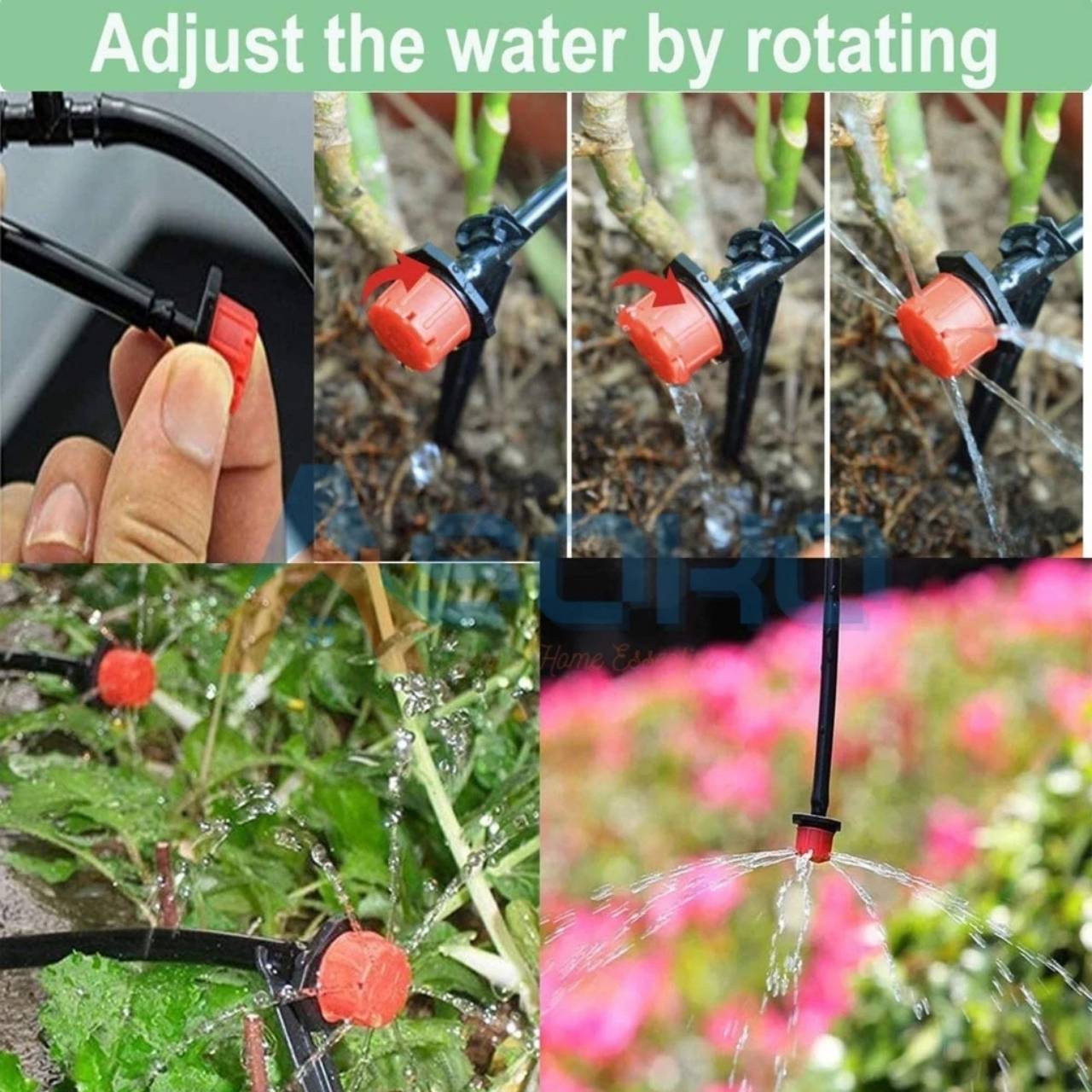 A készlet tartalmaz egy lyukasztó eszközt, amely egyszerűen előkészíti a lyukat minden csepegtető behelyezéséhez. Először óvatosan szúrd át a tömlőt a kívánt helyen a megadott eszközzel. Ezután szorosan helyezd be a csepegtető hegyet a lyukba, hogy biztonságosan a helyén maradjon. A permetező forgatható fejjel rendelkezik, amely lehetővé teszi a tökéletes áramlás-beállítást - a forgatással állíthatod be, hogy mennyi vizet kapjon minden növény. A csepegtető fejek önfelszívó rendszerrel is rendelkeznek, hogy megakadályozzák a dugulást, és 8 kis lyukkal biztosítják az egyenletes vízeloszlást. A rendszer alkalmas használatra a kertben, üvegházakban, gazdaságokban, virágágyásokban vagy cserepes növényeknél. Szükség esetén a rendszer könnyen kikapcsolható vagy újraaktiválható a kifolyó teljes elforgatásával egyik vagy másik irányba. Biztosíts elegendő víznyomást az optimális teljesítményhez, és rendszeresen ellenőrizd, hogy a nyílások nincsenek-e eldugulva talajrészecskéktől.