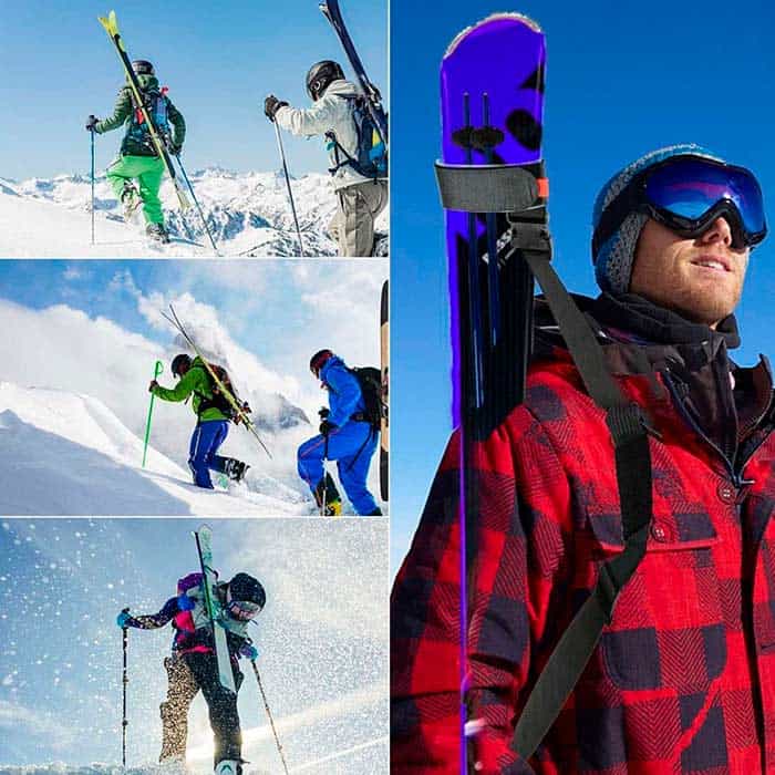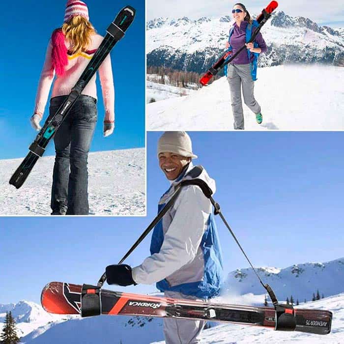 Szeretné könnyebbé tenni a sílécek hordozását egy fárasztó nap után? Görcsbe rándul a válla, miután hosszú sétát tett a sílécekkel a vállán? A SkiStrap pántok segítségével könnyedén becsomagolhatja a síléceket és a botokat párnázott pántokba, majd összekapcsolhatja őket a vállán. Megfelelőek felnőtt síelőknek és gyermekeknek is, mivel teljesen rugalmasak és a méretének megfelelően állíthatók.