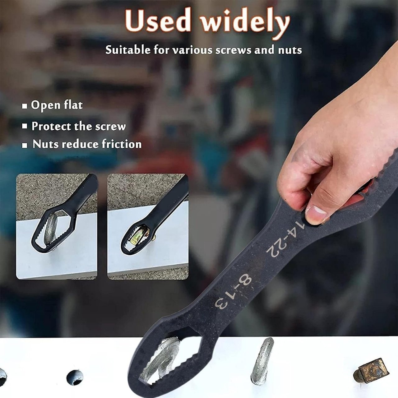 Csavarok és anyák meghúzására és lazítására 8-22 mm méretben; alkalmas autókhoz, motorokhoz, kerékpárokhoz, ipari gépekhez, légkondicionálókhoz, háztartási és egyéb felhasználásra